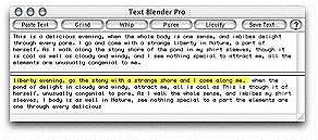 Sophie's plug-in architecture lets developers using Runtime Revolution develop new tools for use in the program. While most of the tools included are merely useful, like the Text-to-Speech plug-in, they can be fun as well, like this Text Blender plug-in that makes text cut-ups: